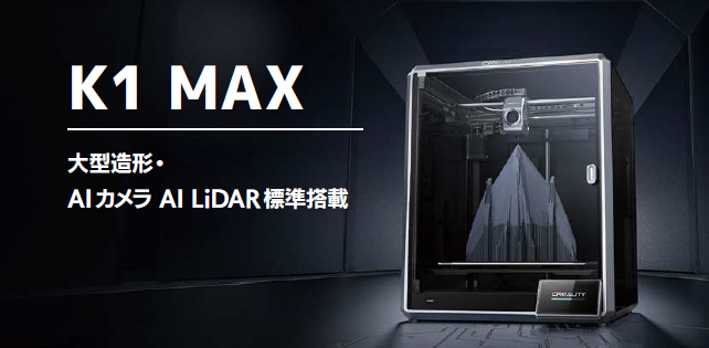 「K1 MAX」は、300×300×300mm の造形エリアを備えており、大型造形が可能です。
