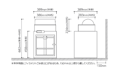 | 本体サイズ※AMSを除く | 389 × 389 × 458mm | ノズル温度 | MAX 300℃ |