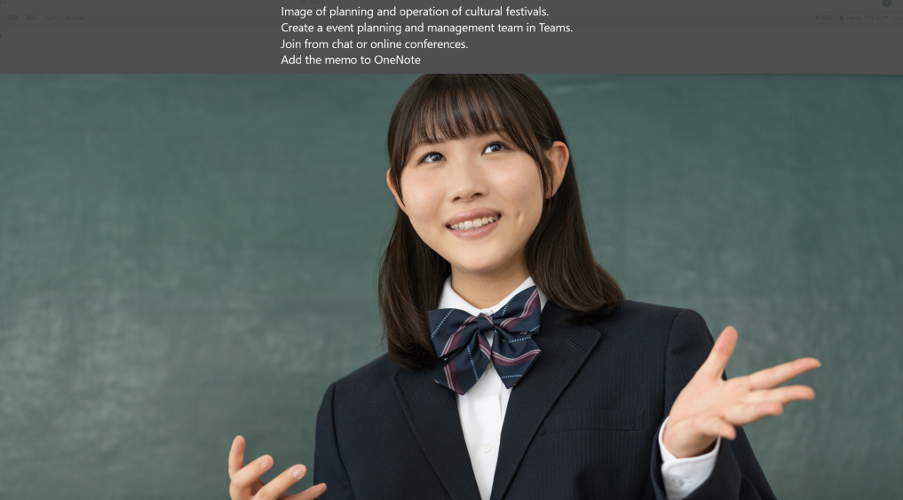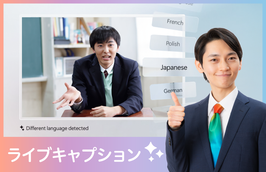 | 授業中、先生が日本語で話した内容が、リアルタイムで外国語の字幕に変換され画面に表示される | 字幕の外国語(中国語・英語)を確認することで、日本語での説明内容をより深く、正確に理解することができる | 生徒は外国語(中国語・英語)の字幕で先生の話を理解できるため、授業の内容をより深く理解することができる | 先生も、外国語で授業内容を理解したい生徒へのサポートに個別の時間を割く必要がなくなり、より多くの時間を指導やクラス運営に充てられる |