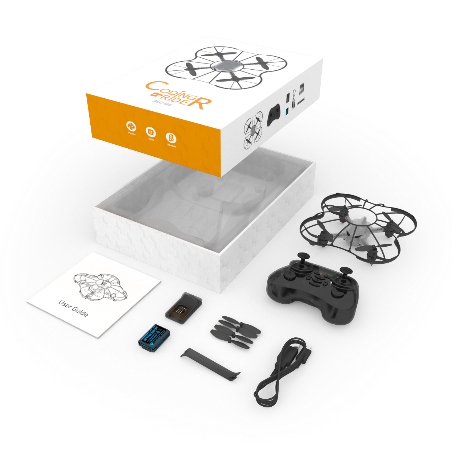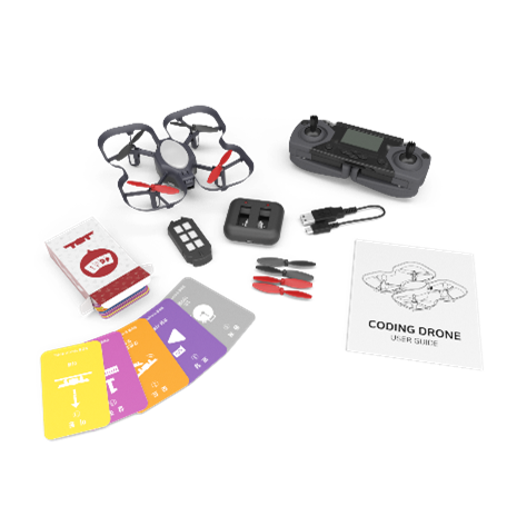 ・コーディングドローン本体×1 ・コントローラ×1 ・カードコーディングパック×1 ・予備プロペラ×1 ・バッテリー×1 ・充電ケーブルx1 ・充電台x1 ・取扱説明書x2 |